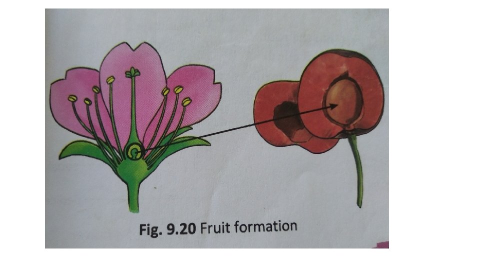 Fruit Formation • Fruit Formation: After pollination, the ovules develop and become seeds. The sepals, petals and stamens fall off. The ovary starts to store food and swells up to form the fruit. The fruit protects the seeds and helps in their dispersal. Fruits may be fleshy or dry, they may have one seed or many seeds. Under favorable conditions, the seed germinates into a seedling.