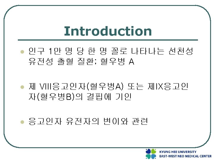 Hereditary Clotting Factor Deficiencies Young-shil, Park, M. D. Division of Hematology-Oncology Department of Pediatrics East-West Neo medical Center Kyung Hee University