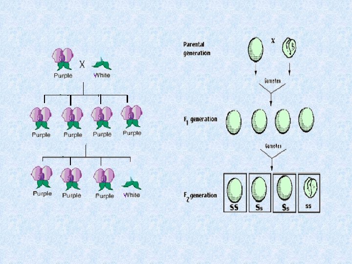 EXPLAINING the F 1 CROSS SEGREGATION LAW OF __________ alleles are separated when the F 1 plants _______ make gametes When these gametes recombined to make the recessive F 2 generation, the _______ trait ________ reappears in ¼ of the offspring