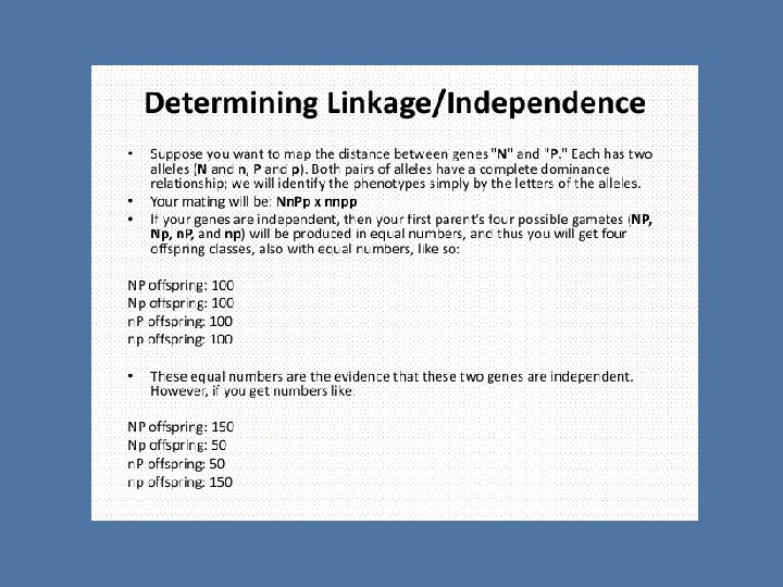 What is a linked gene? � When two genes are close together on the same chromosome, they do not assort independently and are said to be linked. � Have a recombination frequency that is less than 50% � Whereas genes located on different chromosomes assort independently and have a recombination frequency of 50%