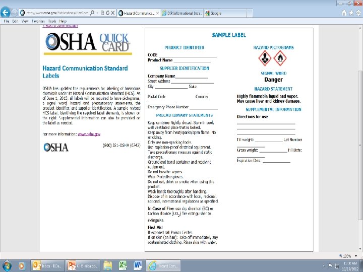 Why? (cont. ) • Countries with systems have different requirements for hazard definitions as well as information to be included on a label or material safety data sheet. • For example, a product may be considered flammable or toxic in one country, but not in another to which it is being shipped.