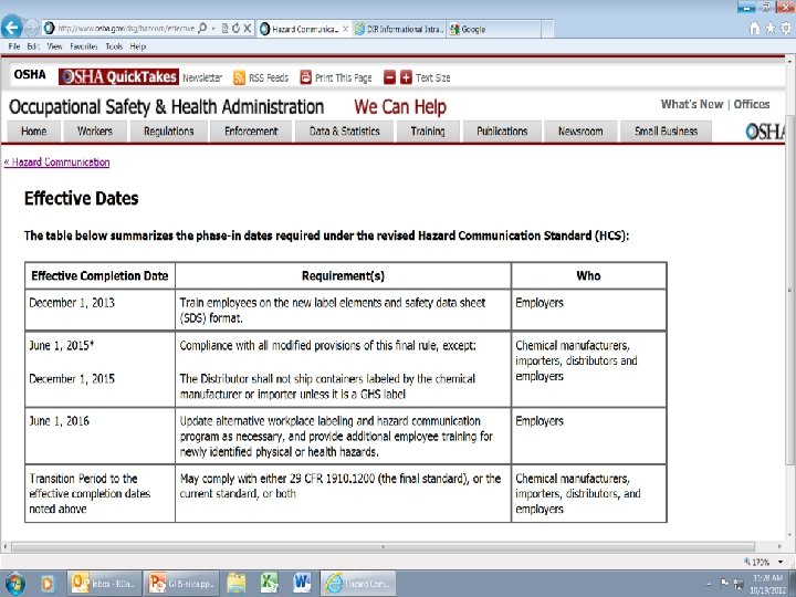 What is Changing? Uniformity-Oriented Approach • Classification of Hazardous Materials • Required Chemical Information • Use of signal words, pictograms, and hazard warning Terminology • “Hazard Determination” is now “Hazard Classification” • “Evaluate” is now “Classify” • “MSDS” is now “SDS”