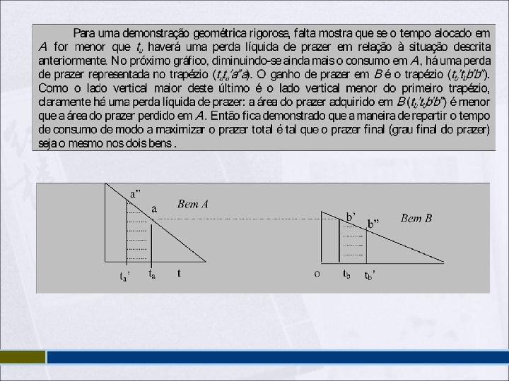 Regra para a repartição do tempo entre lazer e trabalho para a obtenção máxima do prazer: “o último átomo criado em cada prazer deve ser igual ao sacrifício para se criar este átomo no último momento” É a tese da desutilidade marginal do trabalho