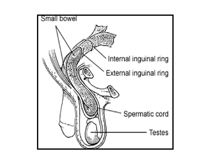 Presentation • At first appearance, it is easily reducible. • With time it can no longer be reduced, it is irreducible or incarcerated. • Strangulation: when visceral contents of the hernia become twisted or entrapped by the narrow opening. Strangulation usually leads to bowel obstruction with sudden, severe pain in the hernia, vomiting and irreducibility.