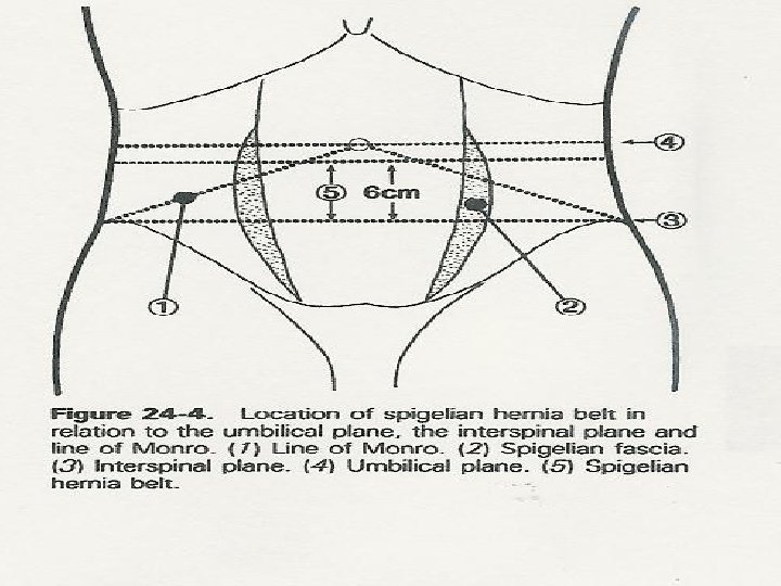 SPIGELIAN HERNIA Ø Ø Rare Hernia through subumbilical portion of semi-lunar line Difficult to diagnose –Abdominal pain or mass noted in abdominal wall. Frequently tender over area Clinical suspicion (location) CT scan Repair primarily or with mesh