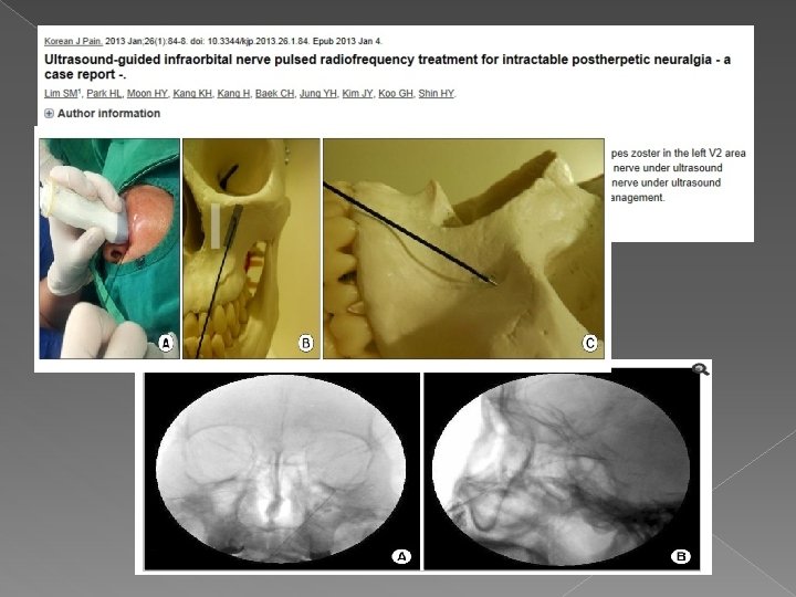 50세 이상 Acute zoster 환자중 64명선정 Group 1 SGB block c 8 ml saline Group 2 SGB block c 0. 125% bupiva 6 ml+ 8 mg dexa total 8 ml 두군 모두 pregabalin 150 mg bid, acetaminophen prn. 일주일간 두번 SGB 시행 후, VAS initial visit, after 2, 3 and 6 mo. Check -> pain duration : group 2에서 통계상 의미 있을 정도로 짧아졌다. PHN incidence : 3, 6개월후에 발병률도 group 2에서 의미 있을 정도로 적어졌다 전체 pregabalin및 acetaminophen사용량도 group 2에서 현저히 감소