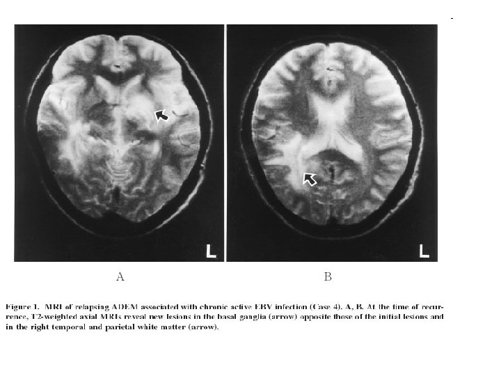 CMV Infecção pós-natal: - MI heterófilo- negativa; - Febre, letargia, linfócitos anormais no sangue periférico; - usualmente sem faringite ou linfadenopatia -retinites - às vezes após transfusão com sangue fresco (vírus inativado em refrigeração)