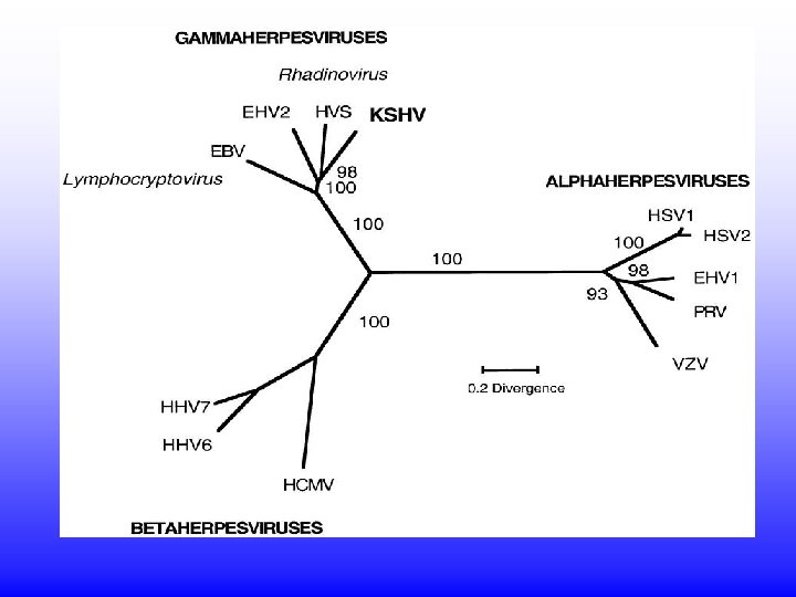 Família Herpesviridae • Subfamília: • Alfaherpesvirinae – Simplexvirus (Herpes simples humano, ou HSV, ou HHV-1 e HHV-2 (human herpesvirus type 1 or 2) – Varicellovirus (vírus da varicela, ou catapora, ou varicela -zoster, VZV (varicella-zoster virus) ou HHV-3 (human herpesvirus type 3)