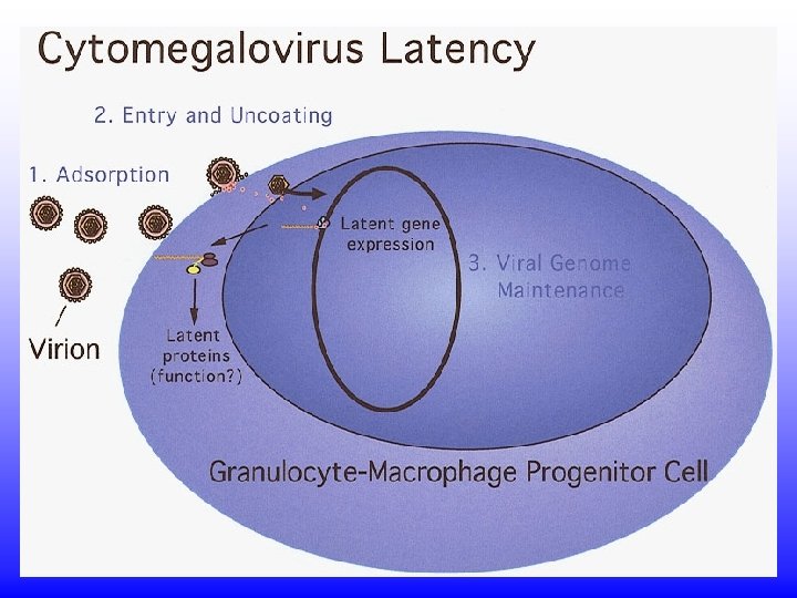 Citomegalovírus (CMV) - é um betaherpesvírus; HHV-5, um só sorotipo - infecção muito prevalente; doença muito rara - neonatos: doença de inclusão citomegálica - mononucleose infecciosa negativa para Acs. Heterófilos - pneumonia em imunocomprometidos - células gigantes => inclusão citomegálica - Latência em células linfóides