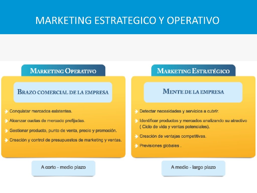 MARKETING OPERATIVO El Marketing Operativo: “La dimensión de la acción del marketing” Se trata de precisar las características del producto o servicio ofertado, de seleccionar los intermediarios a través de los cuales se ha de llegar al mercado, de fijar un precio adecuado y de especificar los medios de comunicación de los que se va a servir la empresa para dar a conocerlos y para poner de manifiesto sus cualidades distintivas. ”