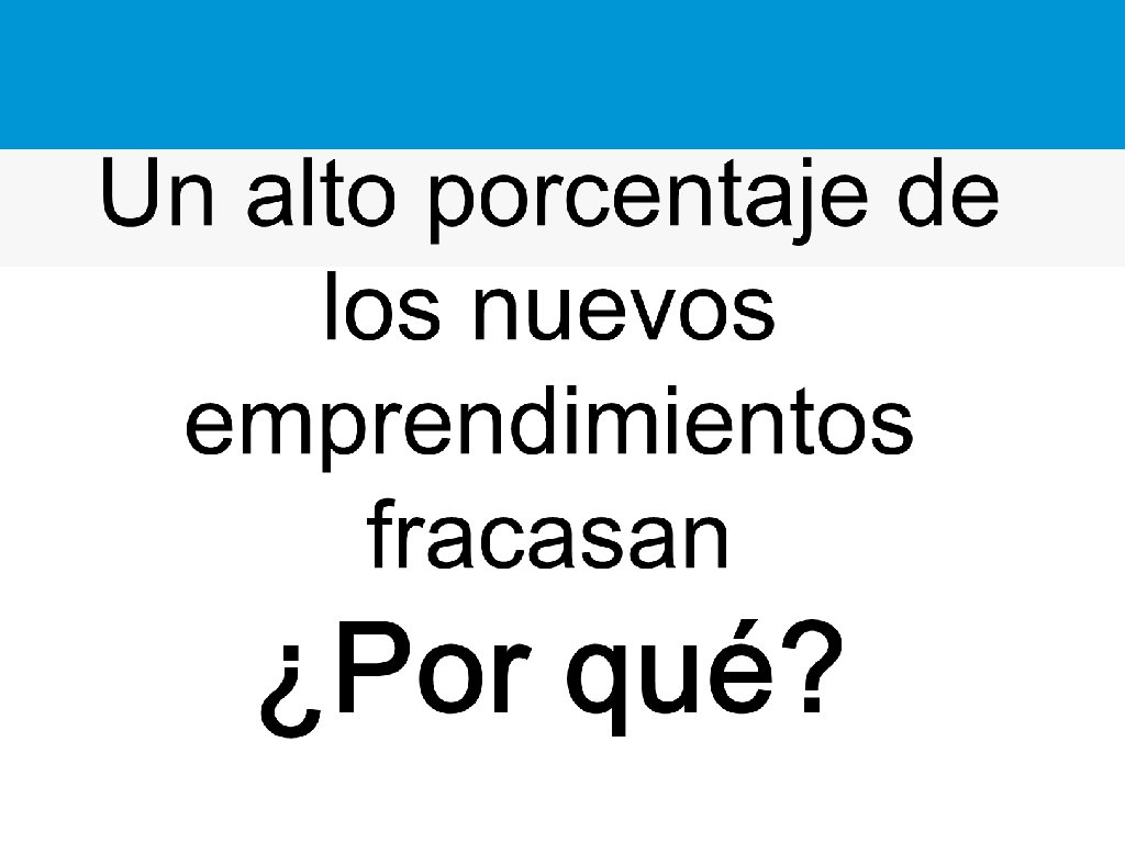 ¿Por qué un alto índice de emprendimientos fracasan? - Porque no aprenden a obtener el permiso del mercado antes de lanzar un nuevo producto o servicio. - Porque no aprenden a lograr lealtad de los clientes, que es una de las llaves del éxito. - Porque descuidan su proceso de selección y capacitación de los componentes de su línea de fuego. - Porque no saben lo que están haciendo sus competidores en materia de productos, servicios, promoción, participación de mercado, tecnología, distribución, precios, etc. - Por la baja comerciales. calidad de sus planes