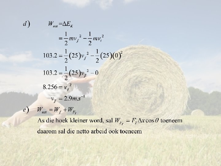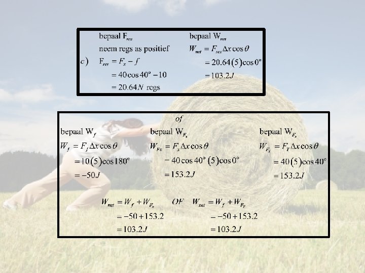 ARBEID-ENERGIE STELLING Die netto arbeid verrig op ‘n voorwerp is gelyk aan die verandering in kinetiese energie van die voorwerp OF Die arbeid verrig op ‘n voorwerp deur ‘n resulterende krag is gelyk aan die verandering in kinetiese energie van die voorwerp