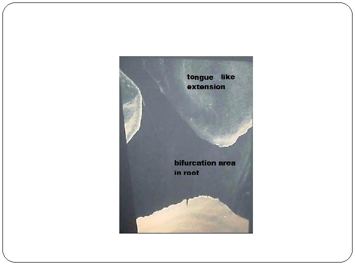 �During the general growth of the enamel organ the expansion of its cervical opening occurs in such a way that long tongue like extensions of the horizontal diaphragm develop. Two such extensions are found in the germs of lower molars and three in the germs of upper molars.