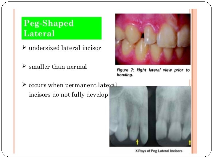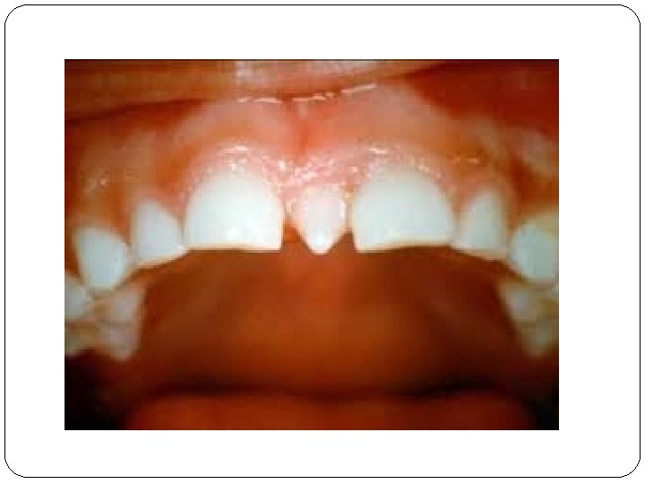 �A suppression of parts may occur like loss of cusps or roots. An abnormality in shape may result in a peg or malformed tooth with enamel and dentin that may be normal in structure. � Peg shaped teeth (screw-driver shaped) with the permanent upper central incisor showing a notched incisal edge may be seen in individuals born with congenital syphilis