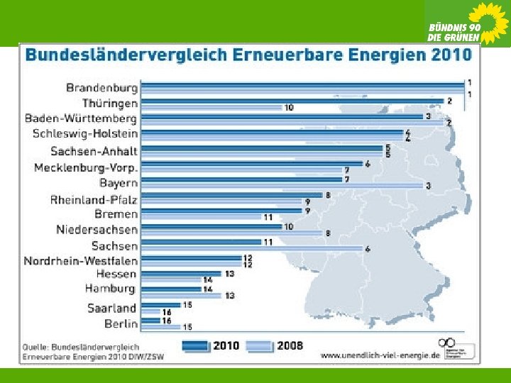 Potenziale Energiegipfel Windenergie : 28 TWh/a Solarenergie: Strom 6 TWh/a - Thermie: ohne Angabe Tiefen-Geothermie: Strom 0, 3 – 0, 4 TWh/a Thermie 0, 8 TWh/a Wasserkraft: 0, 5 TWh/a Biomasse: (Ausschöpfung bereits zu 80 Prozent) 7 TWh davon 0, 9 TWh Strom -Potenzial: 13, 5 TWh/a