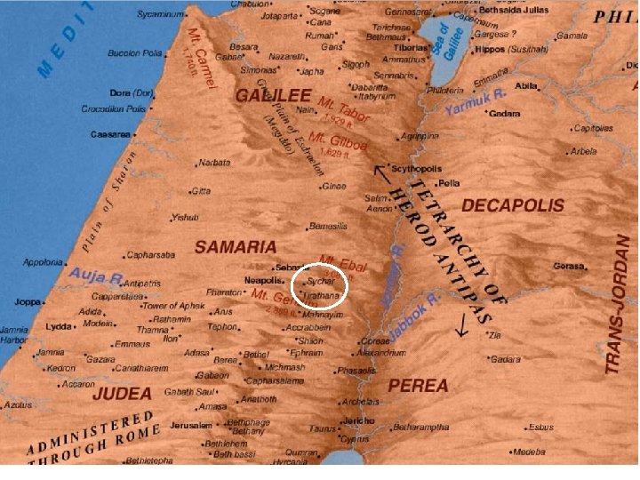 terugblik q Eerste drie hoofdstukken besproken: § § § § Jezus' doop (1) het eerste teken in Kana (2) de tempelreiniging (2) gesprek met Nicodemus (3) verblijf in Judea (3) getuigenis Johannes de Doper (3) Jezus reist naar Galilea, via Samaria en arriveert in Sichar. . .