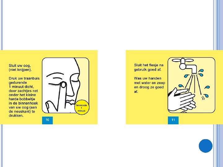 VRAGEN (ALGEMEEN): Aan welke eisen moeten oogpreparaten voldoen? � Hoeveel tijd moet er minimaal zitten tussen het gebruik van meerdere soorten oogdruppels? � Steriel - isotoon - juist p. H - geconserveerd - beperkte hoeveelheid Minimaal 10 minuten Wanneer worden oogdruppels en wanneer worden oogzalven toegepast en waarom? � Oogdruppels overdag: ze mengen met het traanvocht dus de werkingsduur is kort. Oogzalven 's nachts: ze hechten aan het oog waardoor het zien belemmerd wordt.