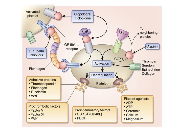 Verschillen arterieel en veneus Arterieel Veneus Begint met beschadiging vaatwand Activering stollingsfactoren Activering van bloedplaatjes Vorming fijn netwerk van fibrine Samenklontering bloedplaatjes Activering stollingsfactoren Vorming van fijn netwerk van fibrine • Dus bij arteriële trombose zijn er twee mogelijkheden om in te grijpen met medicijnen. Remming van de bloedplaatjes en remming van de bloedstolling • Bij veneuze trombose werkt eigenlijk alleen het remmen van de bloedstolling maar NIET het remmen van de bloedplaatjes