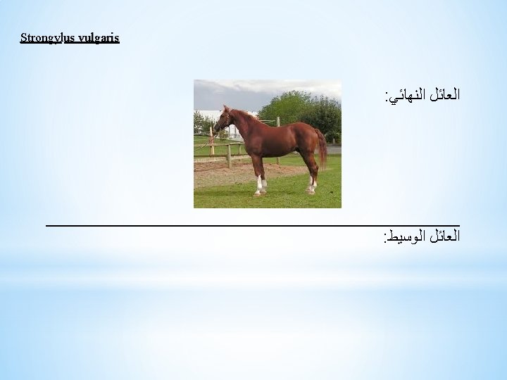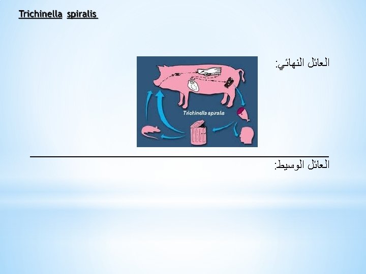 Heterakis gallinae Life cycle Heterakis gallinae Phylum Nemathelminthes Slides: 34 Download presentation Heterakis gallinae Life cycle Heterakis gallinae Phylum : Nemathelminthes Class : Nematode Family : Oxyuridae Ex. : 1 - Enterobius vermicularis Enterobius vermicularis * ﺷﻜـــﻞ ﺍﻟﻄﻔﻴﻞ Enterobius vermicularis Enterobius vermicularis ﺩﻭﺭﺓ ﺣﻴﺎﺓ ﺍﻟﻄﻔﻴﻞ Enterobius vermicularis Enterobius vermicularis ﺗﺸﺨﻴﺺ ﺍﻹﺻﺎﺑﻪ Phylum : Nemathelminthes Class : Nematode Order : Strongylida Family : Strongylidae Ex. : 1 - Strongylus vulgaris Strongylus vulgaris ﺷﻜﻞ ﺍﻟﻄﻔﻴﻞ Anterior end ( Male + Female ) Strongylus vulgaris Posterior end of male ( Copulatory bursa ) Phylum : Nemathelminthes Class : Nematode Order : Enoplida Family : Trichinellidae Ex. : Trichinella spiralis Trichinella spiralis ﺷﻜﻞ ﺍﻟﻄﻔﻴﻞ Trichinella spiralis Trichinella spiralis Larva in muscle Trichinella spiralis ﺍﻷﻤﺮﺍﺿﻴــــﻪ Phylum : Nemathelminthes Class : Nematode Order : Enoplida Family : Trichuridae Ex. : Trichuris trichura Trichuris trichura ﺷﻜــﻞ ﺍﻟﻄﻔﻴﻞ Trichuris trichura Cellular oesophagus Trichuris trichura Posterior end of male Trichuris trichura Egg