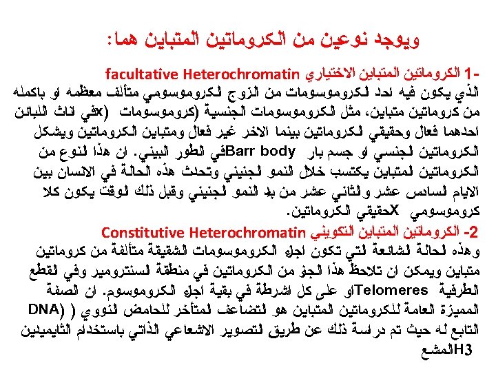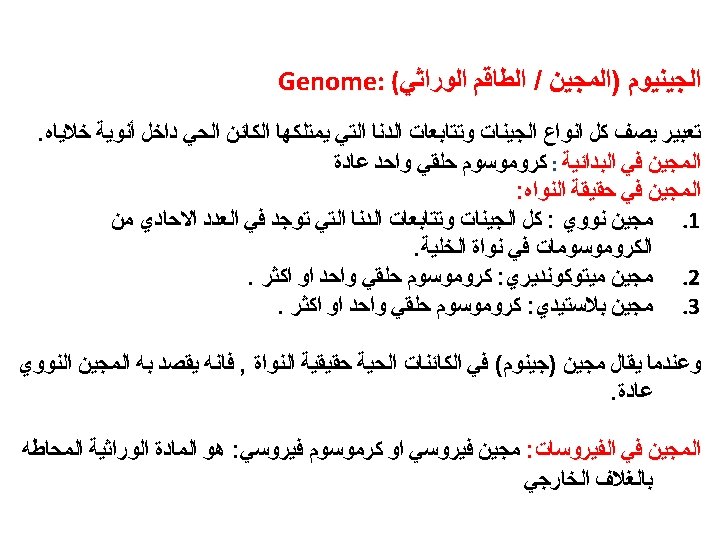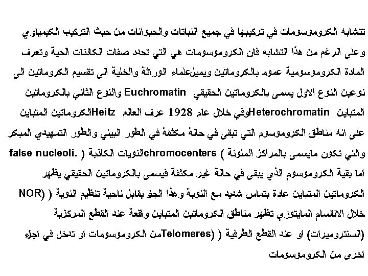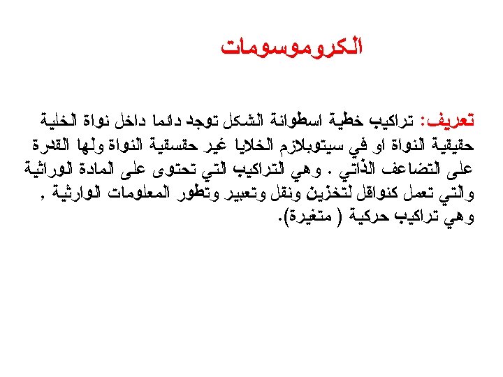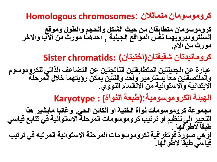 The Karyotype ﺍﻟﻄﺮﺯ ﺍﻟﻜﺮﻭﻣﻮﺳﻮﻣﻰ : It is a display of an individual’s chromosomes that arranged according to size and shapes)