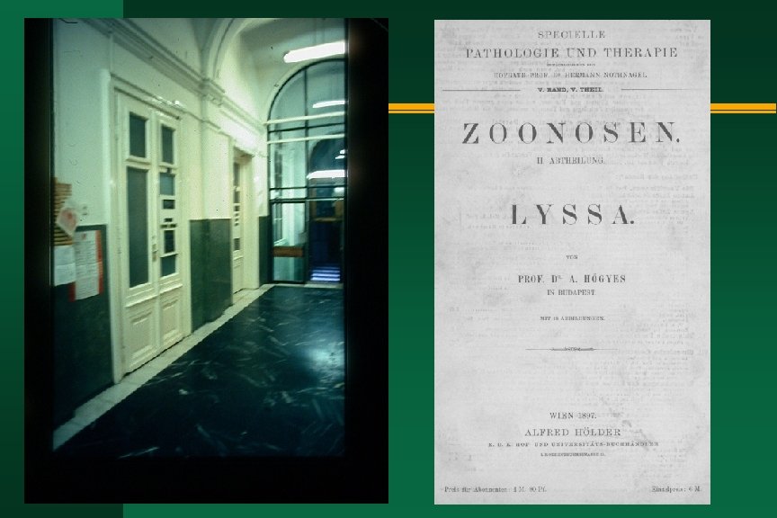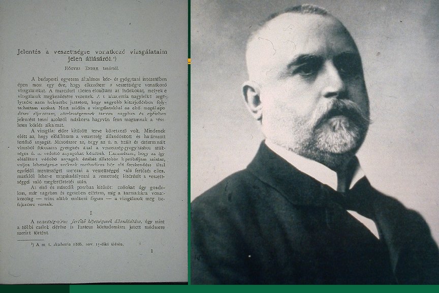 Hőgyes Endre életének kronológiája 1885. nov. 13 egy veszettségben elhalt fiú nyúltagyából a kórt átvitte kísérleti állatokra n 1886. jan. beterjesztette a veszettségellenes védőoltás hígításos módszerét az Akadémián - febr. 27 megkezdte a fix vírus előállítását egy veszett kutya agyvelejéből n 1887 ápr. 6 a kormánytól megbízást kap a veszettség elleni küzdelemre n 1888 nov. 16 első felterjesztése a hazai Pasteurintézet létesítése érdekében n