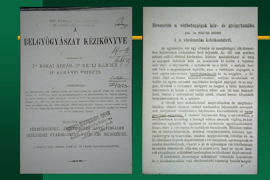 Hőgyes Endre: Emlékönyv a Budapesti Királyi Magyar Tudomány Egyetem orvosi karának múltjáról és jelenérõl Athenaeum Bp. 1896 n Ha az államnak a legértékesebb tőkéje az ember: ennek egészségét és épségét lehetőleg megőrizni és fenntartani az orvosi rend van hivatva tudása által. Az állam számára minél tanultabb és minél képesebb orvosi rendet nevelni, egyike lesz jövőre és marad mindenha a legfontosabb állami kulturális feladatoknak!