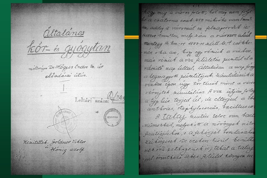 Emlékirat a Pasteur-intézet tárgyában, részlet (1900 márc. 2) n n Minden valamire való, a művelt névre valamit tartó államban vannak már olyan intézetek, melyek betegségek okainak tanulmányozására vannak berendezve. Ezeket részint Pasteur-, részint preventív orvostani intézeteknek nevezik. A kar már a 70 es évek elején foglalkozott ilyen intézet létesítésével. Ha nem lesz ilyen intézetünk, hátra maradunk e téren és ezért sem e tanszék tanárát , sem a tanártestületet nem érheti vád, hanem tisztán az oktatási kormányzatot, amely elmulasztott eddig a kultúra e modern szükségletének eleget tenni.