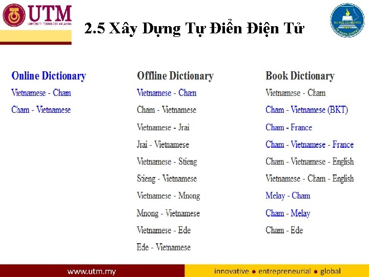 2. 5 Xây Dựng Tự Điển Điện Tử (tt) Giao diện chính của tự điển: Việt-Chăm; Chăm-Việt