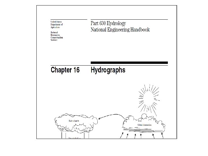 Rainfall Hydrograph Analysis X X = center of mass Peak Basin lag Falling limb or recession Discharge qpk Stormflow or quickflow Rising Limb Tr Antecedent flow rate Baseflow X o eparati raph S g o r d y H ry Arbitra n 0 tq 0 tpk tqc Time tqe