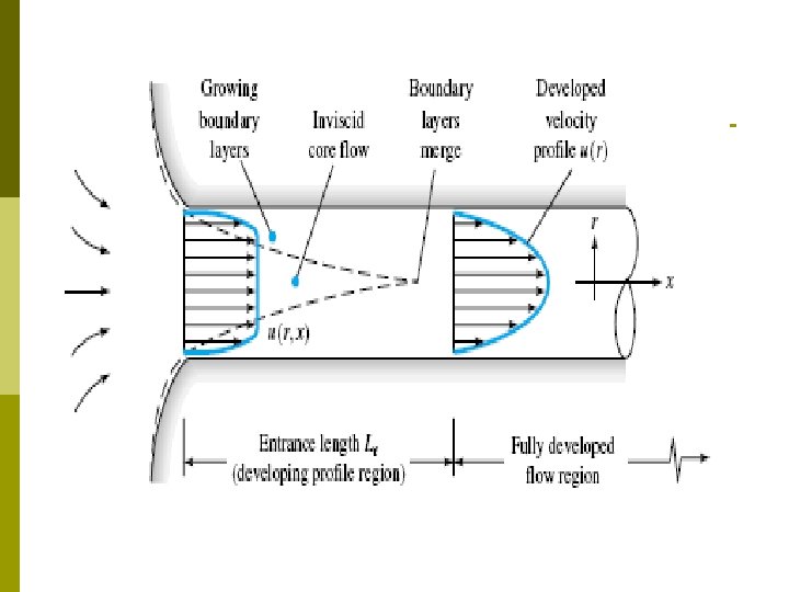 Prinsip Aliran Tertutup § Fluida, setelah mengalir masuk ke dalam pipa akan membentuk LAPIS BATAS dan tebalnya akan bertambah besar sepanjang pipa. Pada suatu titik sepanjang garis tengah pipa, lapisan akan bertemu dan membentuk daerah yang terbentuk penuh di mana kecepatannya tidak berubah setelah melintasi titik tersebut. Jarak dari ujung masuk pipa ke titik pertemuan lapis batas tsb dinamakan PANJANG KEMASUKAN.