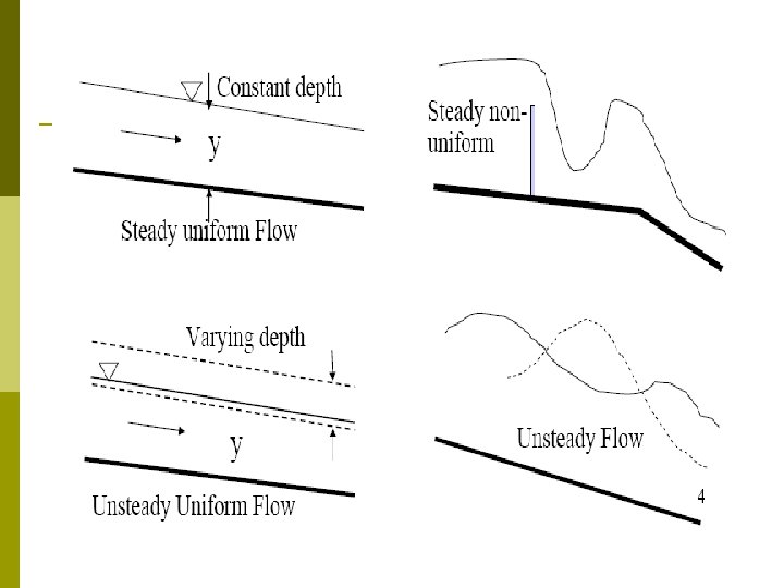 Jenis-Jenis Aliran p Berdasarkan waktu pemantauan n n p Aliran Tunak (Steady Flow) Aliran Taktunak (unsteady Flow) Berdasarkan ruang pemantauan n n Aliran Seragam (Uniform flow) Aliran Berubah (Varied flow)