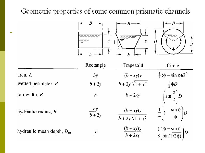 Geometri Saluran Prismatik : penampang melintangnya tidak berubah dan kemiringan dasarnya tetap p Tak-Prismatik : penampang melintangnya berubah dan kemiringan dasar juga berubah p