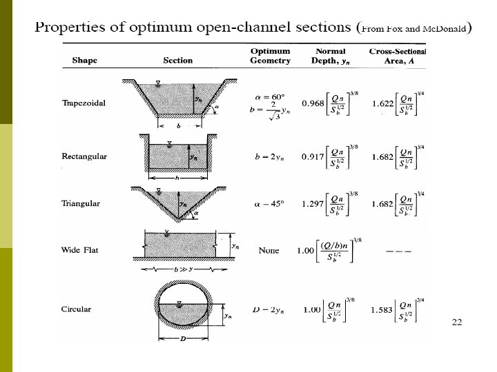 Rumus Chezy p 1769 Insinyur Perancis Antoine Chezy V : Kecepatan rata-rata p R : Jari-jari hidrolik p S : Kemirinan garis energi p C : Faktor tahanan aliran Chezy p