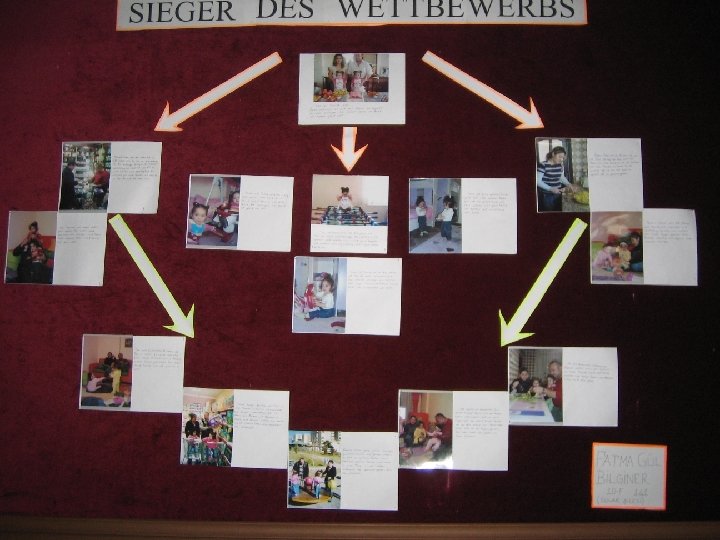 Sieger des Wettbewerbs ist FATMAGÜL BİLGİNER. • Warum ist diese Arbeit die beste ? Die Fotos sind besser als anderen Die Schülerin hat sie im verschiedenen Orten aufgenommen. Das versteht man von den Bildern, dass die Schülerin seit langer Zeit gearbeitet hat. Denn sie hat einige Fotos zu Hause und andere draussen aufgenommen im Park, in einem Kaufhaus… Die Beschreibungen des Fotos erklären alles genau.