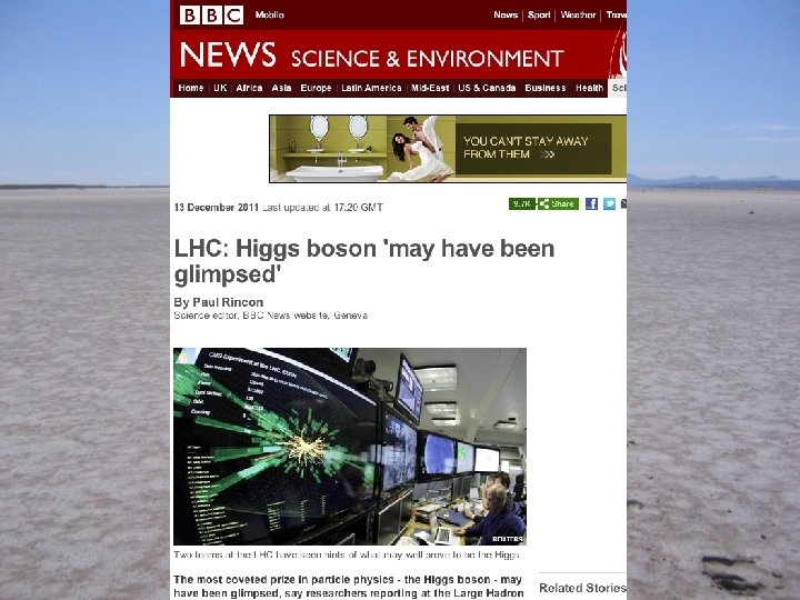 The Stakes in the Higgs Search • How is gauge symmetry broken? • Is there any elementary scalar field? • Would have caused phase transition in the Universe when it was about 10 -12 seconds old • May have generated then the matter in the Universe: electroweak baryogenesis • A related inflaton might have expanded the Universe when it was about 10 -35 seconds old • Contributes to today’s dark energy: 1060 too much!