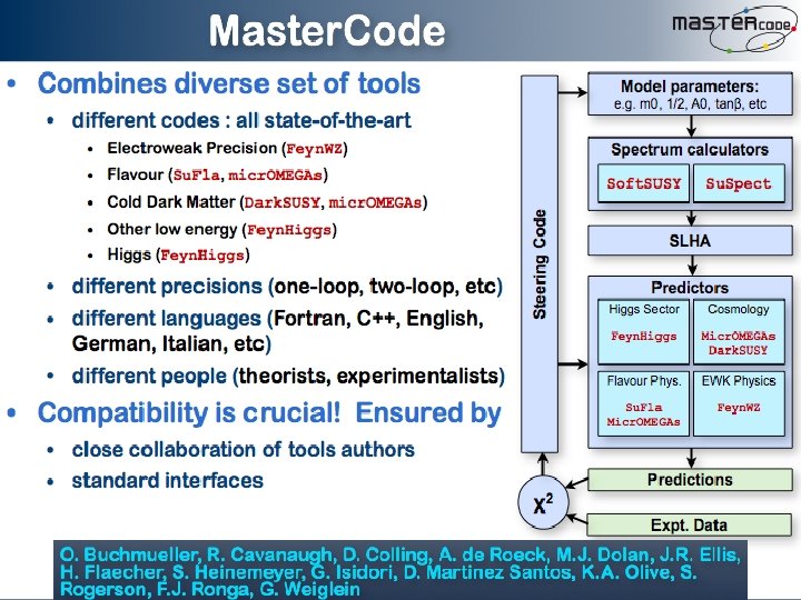 SUSY vs Data • Electroweak precision observables • Flavour physics observables • gμ - 2 • Higgs mass • Dark matter • LHC Master. Code: O. Buchmueller, JE et al.