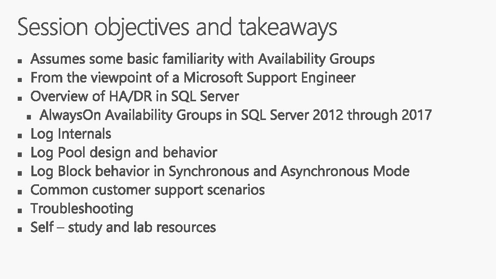 § HA/DR for groups of DBs § Failovers can be automatic or manual § SQL Server replicates transactions from primary to secondaries § Replicas can be synchronous or asynchronous