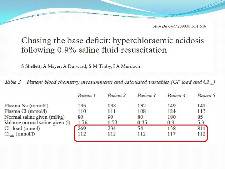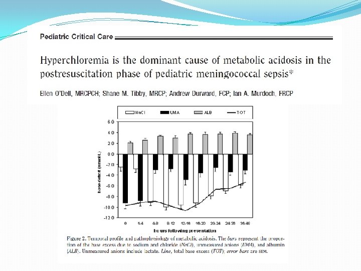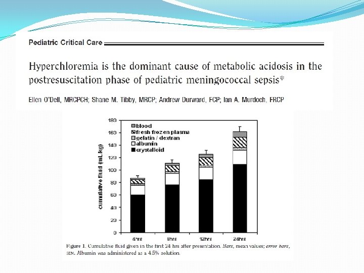 Chloride rich solutions �Serum chloride 97 -110 mmol/l � 0. 9% saline – 154 mmol/l chloride � 4. 5% Albumin – up to 160 mmol/l chloride �Hence large volumes potentiate metabolic acidosis regardless of the underlying disease process �Often unrecognised and poorly managed �Misdiagnosed as inadequate perfusion �Base deficit used as a key prognostic variable in paediatric mortality risk score