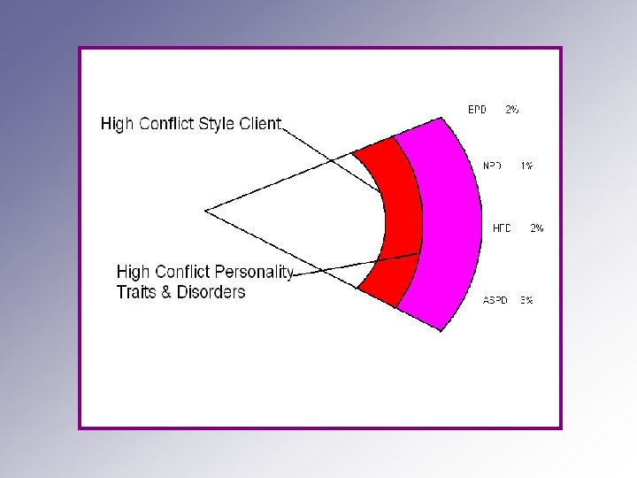 The Paradox of High Conflict Clients The Paradigm shift for Intervention The HCC is always trying to focus on conflicts with others and trying to involve us in solving these conflicts The Real issue: Conflict is WITHIN these individuals