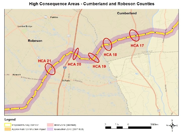 There are 24 ‘High Consequence Areas’ in North Carolina, spanning across 7 counties.