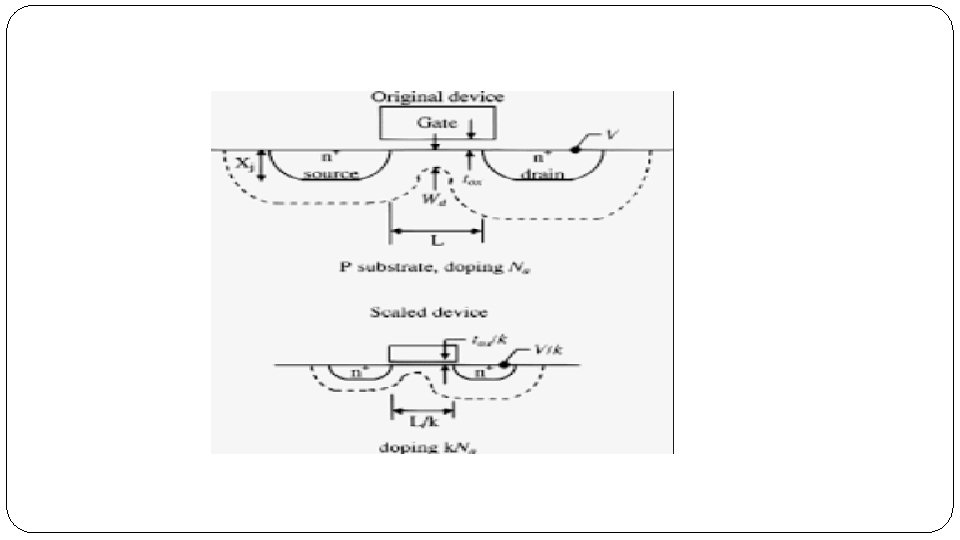 Types of scaling Constant voltage scaling: 2 um to 0. 8 um Constant electric field scaling: 0. 8 um to 130/90 nm Structural enhancement: below 45 nm Constant voltage scaling: below 130/90 nm