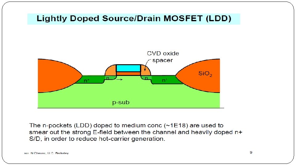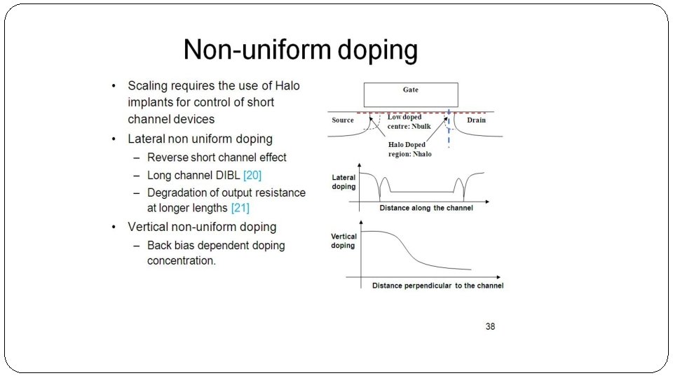 Non uniform channel doping Due to high substare doping Thresold voltage increase and carrier mobility decease also vth roll off and DIBL effects To overcome the above effects, LDD structures are used It reduce the depletion region widths below source drain and as a result it reduces DIBL , HOT carrier and Vth roll off effects