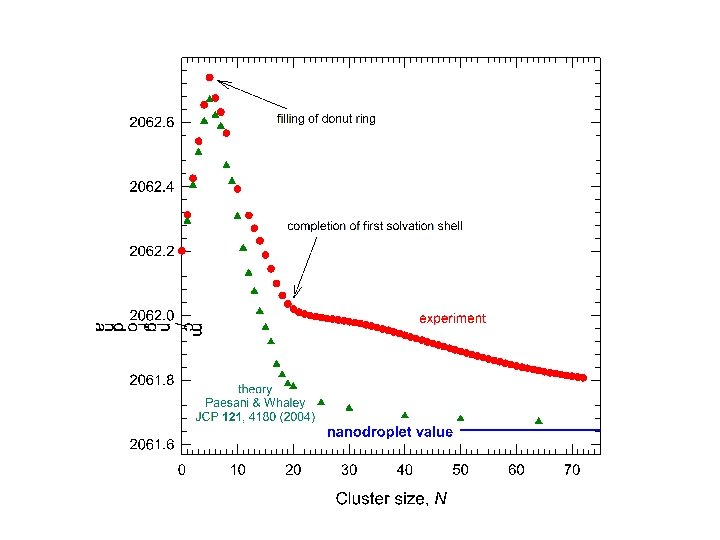 Conclusions • These are the largest clusters (weakly-bound complexes) to be studied by ‘real’ high resolution vibration-rotation spectroscopy • The lines remain sharp up to N = 70 (at least) • For N = 2, 3, (4? ), calculate exact energy levels from conventional (semirigid molecule) theory and potential energy surface [nuclear spin, missing levels] • But for larger clusters, there are too many large-amplitude degrees of freedom – have to use QMC-type simulations • Evolution from small (N = 2, 3) to medium (5 - 70) to large (1000 10, 000) clusters probes the onset of superfluidity • What does superfluidity really mean in a small cluster, and how does it relate to ‘shell’ structure? • A bridge between the micro and macro worlds