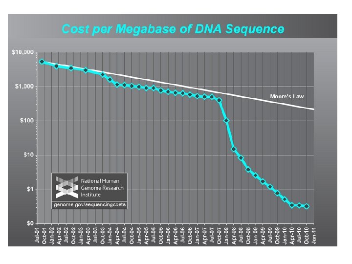 DNA Sequencing capability has grown exponentially DNA sequences in Gen. Bank Doubling time = 18 months