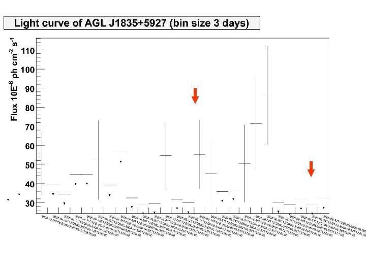 AGLJ 2022+3622 ATEL #1308 Chen et al. AGILE gamma-ray detection of a strongly variable source in the Cygnus region Observed November 9 -25, 2007 1 -day flare on November 23 -24, 2007 Significance and flux 3 days: (1. 2 ± 0. 3) × 10 -6 cm-2 s-1 at 4. 9 σ 1 day: (2. 6 1. 0) × 10 -6 cm-2 s-1 at 3. 8 Position (l, b)=(74. 4, -0. 5)°, error ~ 0. 8° 32