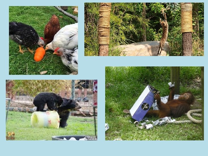 Enrichment • Stereotypic behaviours and misdirected behaviours can be overcome by enriching an animal’s environment • Zoos and safari parks use enrichment techniques to keep animals stimulated and avoid mental stress