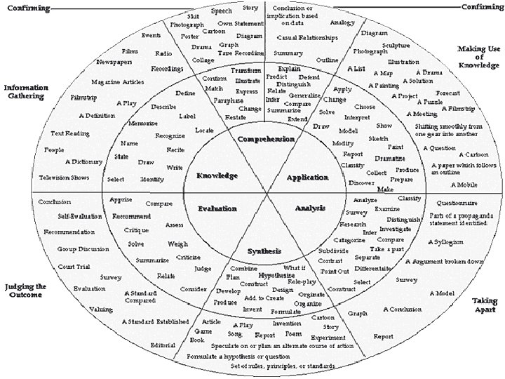 Verbs Remember Understand Apply Analyze Evaluate Create Arrange Count Define Describe Draw Duplicate Identify Label List Match Memorize Name Order Outline Point Quote Read Recall Recite Recognize Relate Recall Associate Classify Compute Convert Defend Discuss Distinguish Estimate Explain Express Extend Extrapolate Generalize Give examples Indicate Infer Locate Paraphrase Predict Rewrite Review Summarize Translate Add Apply Calculate Change Choose Classify Complete Compute Demonstrate Examine Facilitate Graph Illustrate Interpret Manipulate Modify Operate Prepare Produce Show Solve Subtract Translate Use Analyze Arrange Breakdown Calculate Categorize Combine Compare Contrast Criticize Design Detect Develop Diagram Differentiate Discriminate Distinguish Illustrate Infer Model Outline Point out Question Relate Select Appraise Argue Assess Compare Conclude Contrast Criticize Critique Defend Determine Discriminate Estimate Evaluate Explain Grade Interpret Judge Justify Measure Rank Rate Select Summarize Support Arrange Assemble Categorize Collect Combine Compile Compose Create Design Develop Devise Explain Formulate Generate Group Integrate Modify Order Organize Plan Propose Reconstruct Reorganize Revise