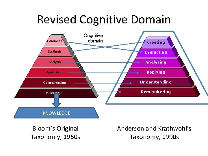 Revised Cognitive Domain KNOWLEDGE Bloom’s Original Taxonomy, 1950 s Anderson and Krathwohl’s Taxonomy, 1990 s