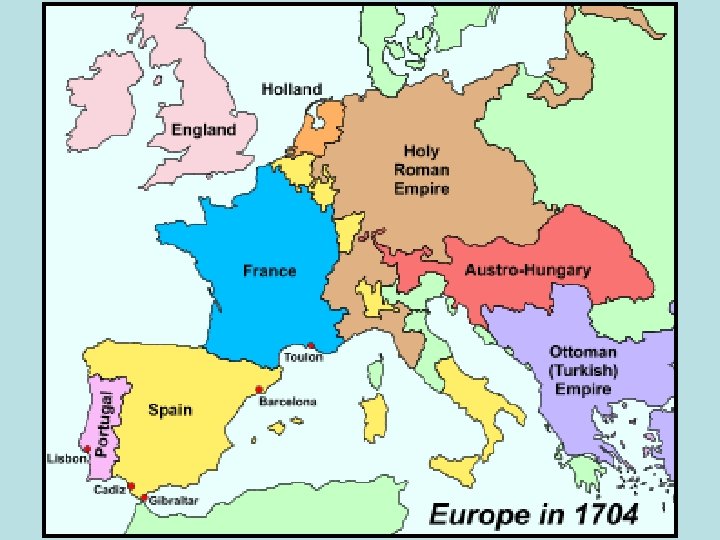 v The Dutch (newly independent of Spain) and France did not want the Hapsburg empire to be united as it had been under Charles V (HRE) v With no heir…Who would take control of Spain? v 3 claimants v Louis XIV’s grandson v Leopold I (HRE)’s son v Joseph Ferdinand of Bavaria (neither Bourbon nor Hapsburg!) related by marriage