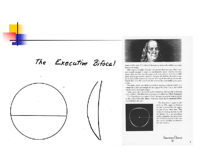 AO Ophthalmic Lens “Firsts” n n n Tillyer Corrected Curve Series Minus Toric Series Implementation of Franklin Style Executive Bifocal Plastic Photochromic Lens Permalite Abrasion Resistant coating AO Compact Small Frame PAL